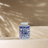 Liten hvit og blå krukke med chinoiserie mønster.
