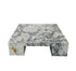 Kvadratisk stuebord bekledd i Calacatta Viola marmor.